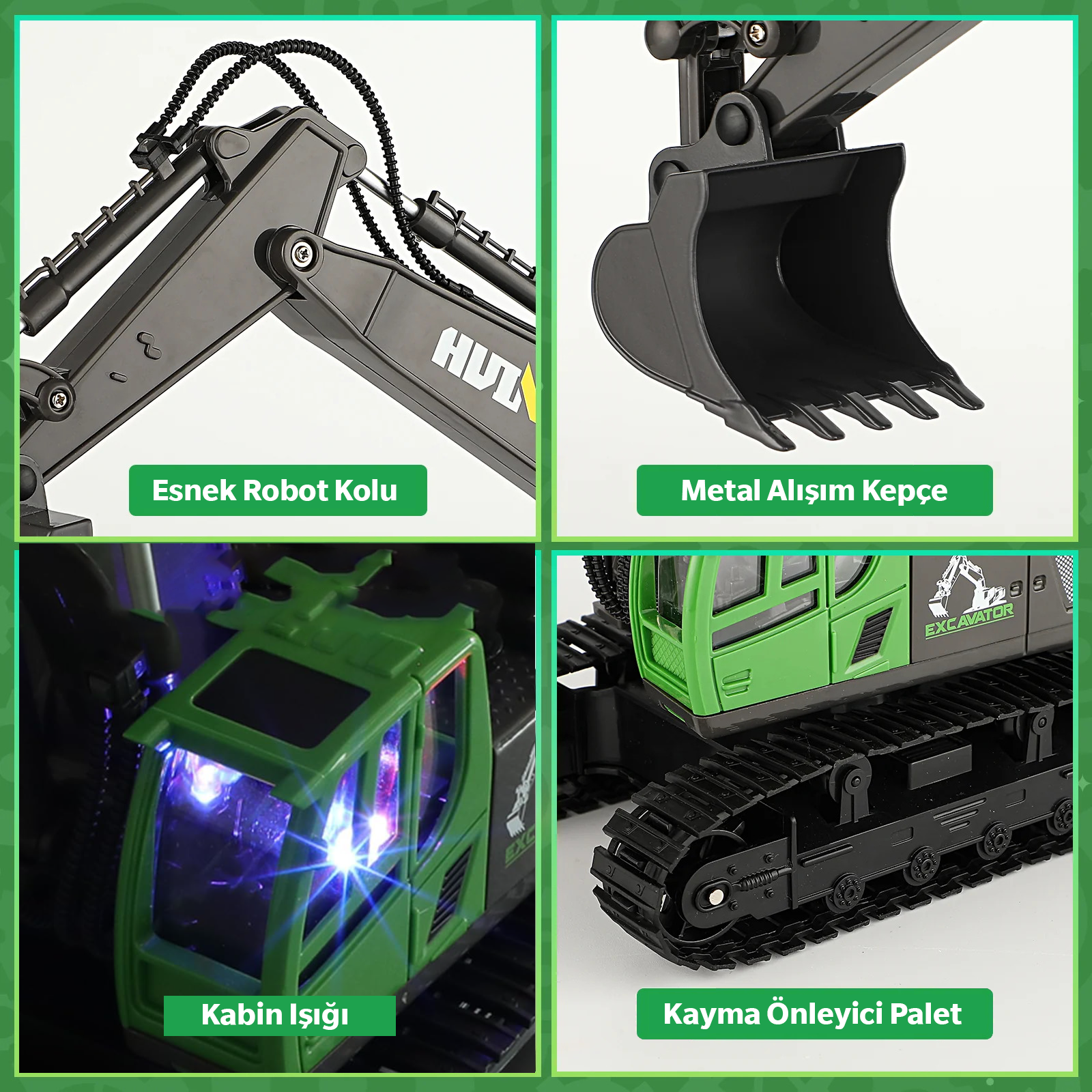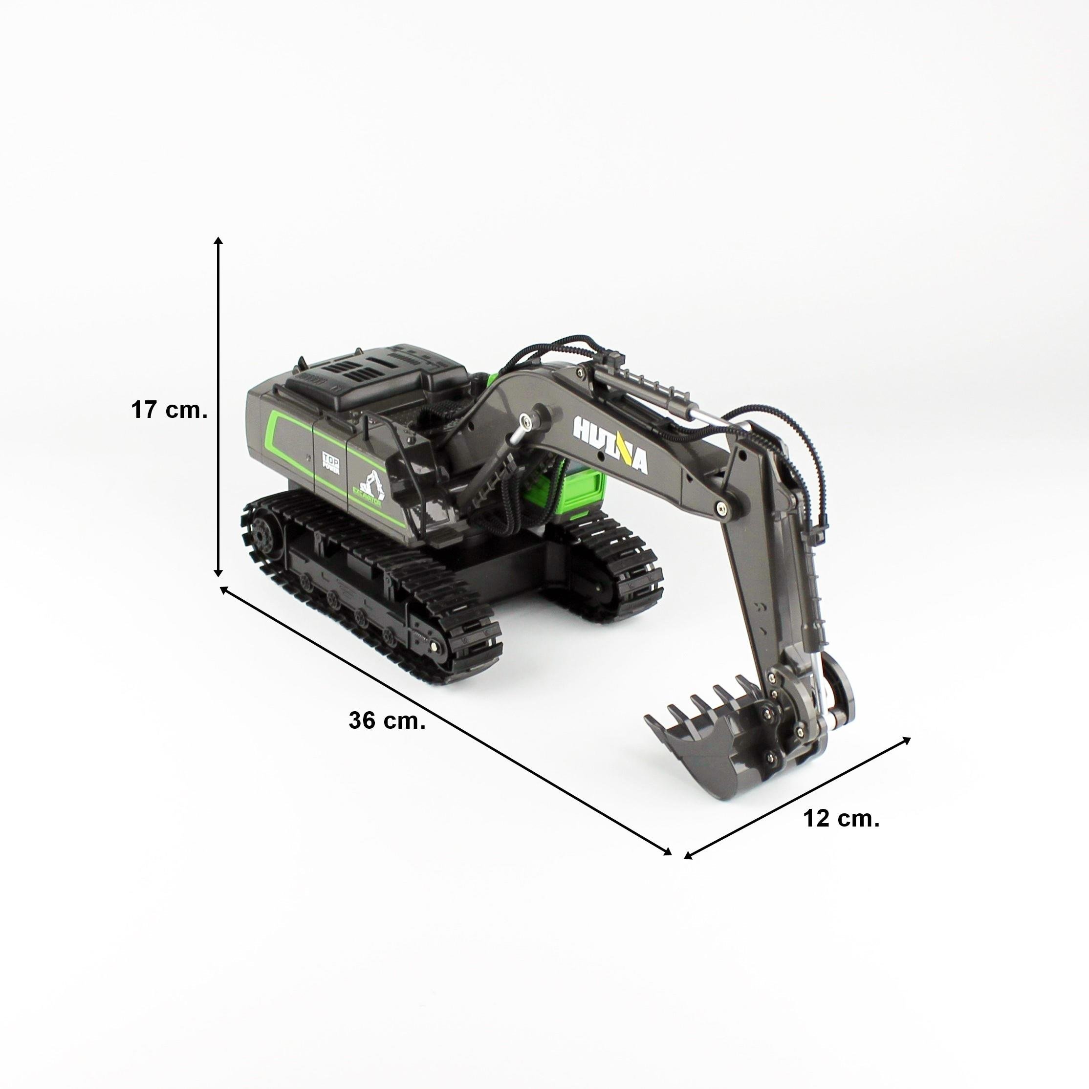 Huina 1558 1/18 Ölçek, Ekskavatör, Yeşil Gövdeli, 11 Kanal Uzaktan Kumandalı İş Makinası