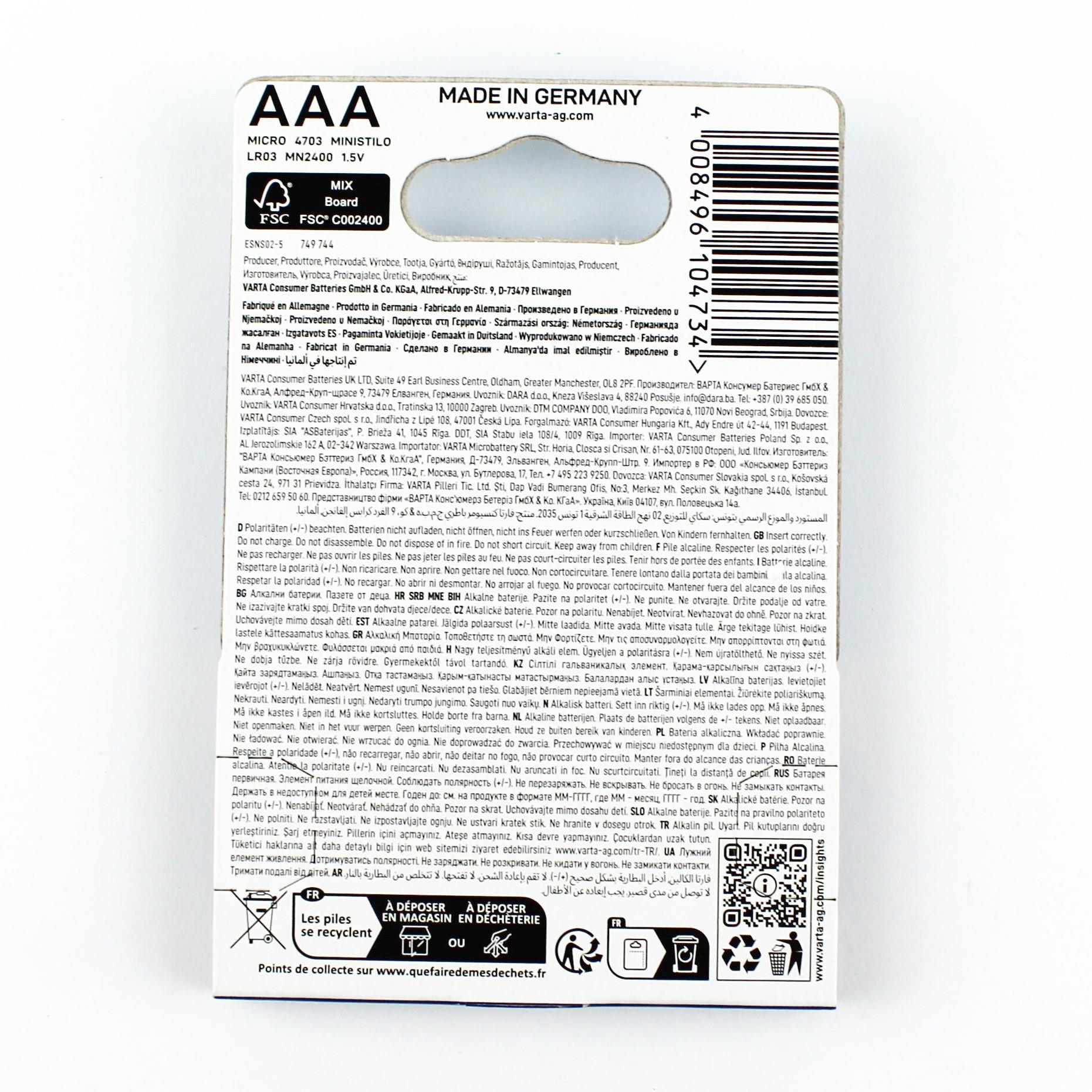 Varta 4703 AAA İnce Kalem Pil, Longlife Max Power Alkalin, 4 Adet, V4703 stok koduyla 147.40 TL’ye modelrc.com.tr’de.